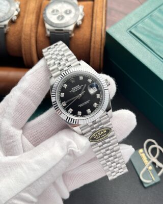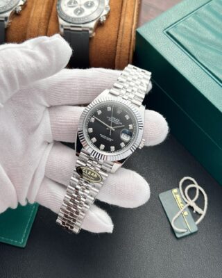 The Superclone Rolex Datejust Black Diamond Dial 126334-0012 41 mm captures everything people love about the Datejust collection. It combines a black diamond dial with a stainless steel case (41mm) and an automatic movement — all at a fraction of the retail price.