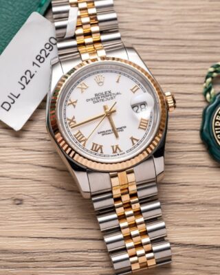 The Superclone Rolex Datejust White Roman Dial 126231-0015 36 mm captures everything people love about the Datejust collection. It combines a white roman dial with a stainless steel & everose gold plated case (36mm) and an automatic movement — all at a fraction of the retail price.