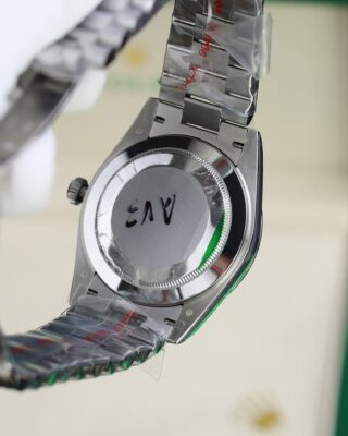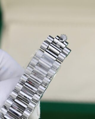 - Case & Bracelet: Stainless Steel case on a president-semi-circular three-piece links (president) — the weight and finish match the genuine piece closely.
