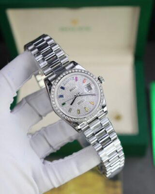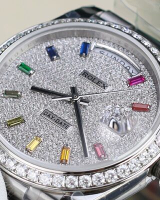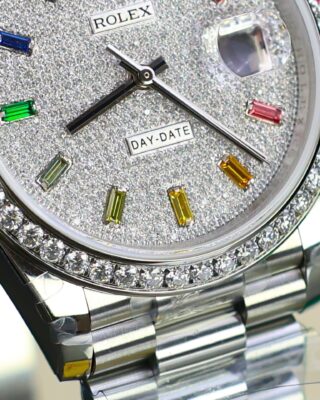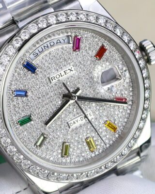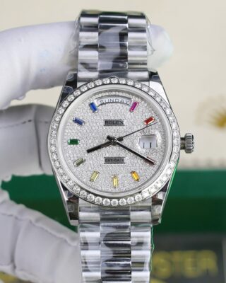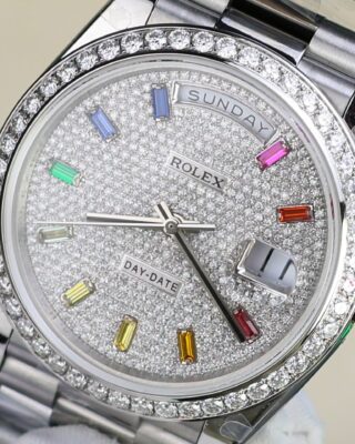 The Superclone Rolex Day-Date Diamond-Paved Dial 128349rbr-0006 36 mm is built for people who appreciate fine watchmaking without the five-figure price tag. This Day-Date features a diamond-paved dial housed in a stainless steel case (36mm), powered by an automatic movement for reliable everyday wear.