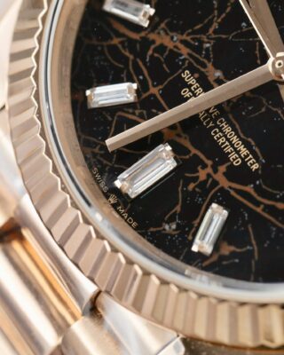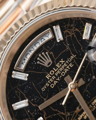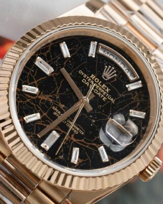 The Superclone Rolex Day-Date Eisenkiesel Diamond Dial 128235-0041 36 mm captures everything people love about the Day-Date collection. It combines an eisenkiesel set with cz diamonds dial with a stainless steel & everose gold plated case (36mm) and an automatic movement — all at a fraction of the retail price.