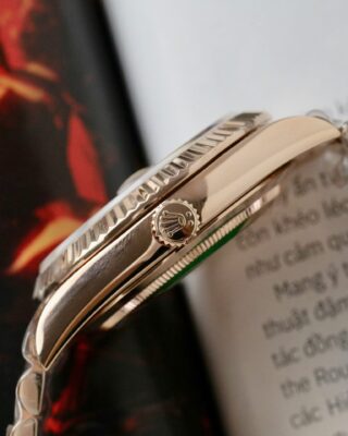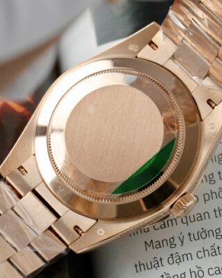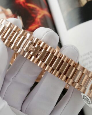 - Case & Bracelet: Stainless Steel & Everose Gold Plated case on a president-semi-circular three-piece links (president) — the weight and finish match the genuine piece closely.