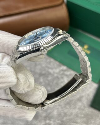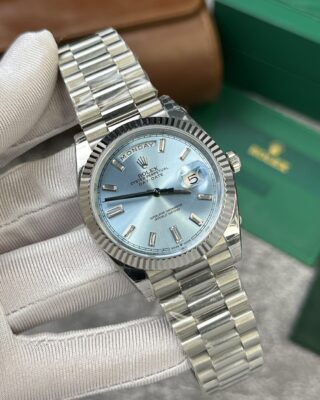 Looking for a Rolex Day-Date replica that actually looks and feels like the real thing? The Superclone Rolex Day-Date Ice Blue Diamond Dial 228236-0006 40 mm is one of our most popular Day-Date models — and for good reason. It features an ice blue set with cz diamonds dial, a stainless steel case (40mm), and an automatic movement that keeps accurate time day after day.