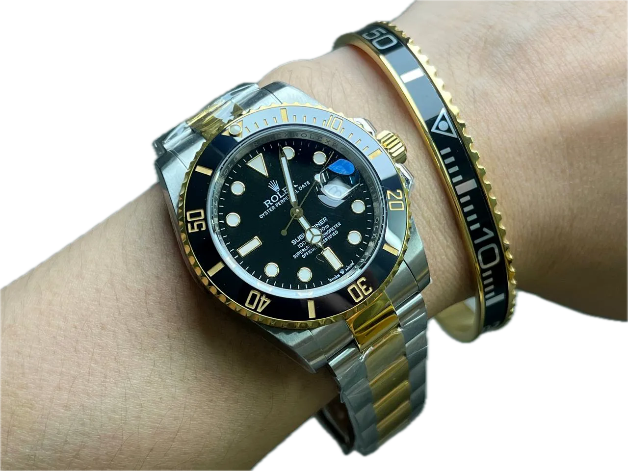 The Superclone Rolex Submariner Black Dial 126613LN captures everything people love about the Submariner collection. It combines a black dial with a stainless steel & yellow gold plated case (41mm) and an automatic movement — all at a fraction of the retail price.